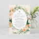 Hermosas invitaciones a la dedicación con un elegante marco moderno y neutro de color pastel acuarela floral botánica con tonos tierra suaves de melocotón, naranja, suave rubor, amarillos y muchos tonos verdes de verde salado a verde claro y más profundo. Sus detalles personalizados se muestran en una distribución tipográfica elevada que coloca a la niña dulce delante y en el centro.