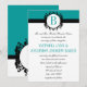 Invitación Deep Aqua Damask Monogram Wedding Invite