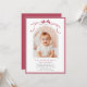 Invite friends and family to celebrate the first birthday with this cute invitation, featuring a deep blush pink ribbon bow and a photo.
