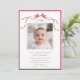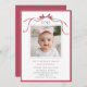 Invite friends and family to celebrate the first birthday with this cute invitation, featuring a deep blush pink ribbon bow and a photo.