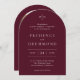 Classic style arch wedding invitation featuring a simple yet elegant design in a deep burgundy color that is perfect for a fall wedding or a winter / Christmas wedding. Use the template to add a photo or remove it in the design editing tool.
