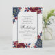 Rich floral elements in deep burgundy and navy blue frame a classic design. This motif evokes a sense of sophisticated romance and timeless elegance.