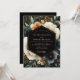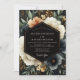 This design evokes a moody, enchanting atmosphere with its rich palette of deep navy, cream, and peachy-orange blooms. Lush botanical elements intertwine with dramatic floral arrangements, creating a sense of opulent, rustic romance.