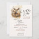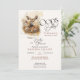 Rústica cierva acuática con su flor tendida en la hierba del prado del otoño, para esta divertida Invitación de Baby Shower hemos añadido el mensaje "Oops Baby" no todos los milagros están planeados. ;) - fondo beige de concha de huevo - Hace para una gran ducha de bebé de animales de bosque estilo Boho para la madre teniendo su bebé no planeado.