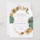Cactus Suculento Oro Geométrico de Terracotta Coral Millennial Pink and Green Destination Desert Cactus Framing esta tipografía Boda Incluyendo Cita FairyTale en la parte posterior. Invitaciones a la boda verde azulada y amarilla de la Toscana