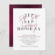 ¡Es hora de celebrar! Nuestra Invitación a la Fiesta del Vino Sip Sip Hooray presenta "sip hooray" en la presentación moderna de tipo dúo con tipografía de escritura con letras de mano de vino sobre el tipo clásico de serif, y la tarjeta está personalizada en sans serif moderno. Esta tarjeta puede ser personalizada para el Día de Galentine o para el El día de San Valentín. Todo el texto más pequeño se puede editar para adaptarlo a sus necesidades. En la parte trasera de la tarjeta se encuentra una bonita textura de Relieve metalizado falso de color vino. Copyright Elegant Invita, todos los derechos reservados.