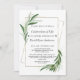 Elegante diseño de cartas con hojas de oliva acuarelas, marco de imitación de oro vintage, sobre un fondo blanco. En la parte de atrás una foto, nombre, el mismo diseño. Utilice la herramienta Personalize para agregar su información. Por favor, visite mi colección de agradecimientos por la celebración de la vida.