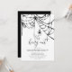Esta divertida invitación incluye un ilustracion en blanco y negro de una araña colgando de una telaraña. Las palabras "Let's Hang Out" están escritas en una tipografía bastante espeluznante. Es la manera perfecta de darle un toque de diversión de Halloween a su fiesta y hacer saber a sus invitados que están ahí para pasar un buen rato. Seguramente será un éxito con todos los que lo reciben.
