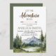 Que la Aventura Empiece la Invitación Rustica de Baby Shower Forestal. ¿Quieres celebrar tu ducha especial de bebé con un tema de inspiración aventurera? No busque más allá de nuestra invitación "Let the Adventure Begin". Con un diseño exterior que mezcla elementos rústicos y colores alegres y luminosos, esta invitación es perfecta para dar un tono de diversión y celebración festiva.