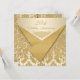Esta elegante y sofisticada invitación de aniversario de bodas de 20 años con patrón de brocado de damasco beige y dorado y solapas delanteras doradas brillantes con PRINTED ON tiene un adorno dorado ornamentado en la parte delantera y una araña de salón de baile formal en negro en la parte posterior. Haría una declaración elegante para la pareja que celebra 20 años de matrimonio. Sugiero papel metálico de hielo o champán, fieltro crema o papel básico. Si necesita algún artículo que coincida, por favor envíe su solicitud a niteowlstudio@gmail.com.