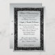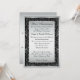 Esta elegante invitación de aniversario de bodas número 25 en negro y gris plateado tiene un borde intrincado de flores plateadas ornamentadas. Todo el texto es personalizable, y también las opciones de papel. ****POR FAVOR TENGA EN CUENTA que el papel plateado metálico es un gris carbón muy oscuro y alterará severamente los colores del diseño, por lo que NO sugiero usar ese papel. Se muestra aquí en papel básico, pero brillaría muy bien en papel de hielo metálico, que tiene un sutil brillo opalescente. El papel de fieltro es un papel grueso y texturizado que también daría resultados lujosos. El lino enfriará el diseño y es un papel ligero con líneas delgadas que lo atraviesan. El papel delicado es MUY delgado y semi-transparente como el vellum, por lo que no sugiero pedir ese ni el papel acanalado. TAMBIÉN, si cambia las fuentes o tamaños de fuente, su texto puede no caber correctamente. Zazzle no editará nada por errores tipográficos, alineación o cualquier otra cosa, y yo no veré su invitación. Todo se imprimirá tal como aparece en su monitor. Si necesita ayuda con la invitación, por favor contácteme ANTES de pedirla. Esta invitación está diseñada para ajustarse a la tarjeta de tamaño 5x7. Si cambia a otro tamaño, el diseño ya no se ajustará correctamente, así que si desea un tamaño diferente, por favor contácteme para que pueda rediseñarlo para usted. Si necesita otros artículos que coincidan con este