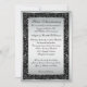 Esta elegante invitación de aniversario de bodas número 25 en negro y gris plateado tiene un borde intrincado de flores plateadas ornamentadas. Todo el texto es personalizable, y también las opciones de papel. ****POR FAVOR TENGA EN CUENTA que el papel plateado metálico es un gris carbón muy oscuro y alterará severamente los colores del diseño, por lo que NO sugiero usar ese papel. Se muestra aquí en papel básico, pero brillaría muy bien en papel de hielo metálico, que tiene un sutil brillo opalescente. El papel de fieltro es un papel grueso y texturizado con relieve que también daría resultados lujosos. El lino enfriará el diseño y es un papel ligero con líneas finas que lo atraviesan. El papel delicado es MUY delgado y semitransparente como el vellum, por lo que no sugiero pedir ese ni el papel acanalado. TAMBIÉN, si cambia las fuentes o tamaños de fuente, es posible que su texto ya no quepa correctamente. Zazzle no editará nada por errores tipográficos, alineación o cualquier otra cosa, y yo no veré su invitación. Todo se imprimirá tal como aparece en su monitor. Si necesita ayuda con la invitación, por favor contácteme ANTES de pedirla. Esta invitación está diseñada para ajustarse a la tarjeta de tamaño 5x7. Si cambia a otro tamaño, el diseño ya no se ajustará correctamente, por lo que si desea un tamaño diferente, por favor contácteme para que pueda rediseñarlo para usted. Si necesita