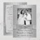 Esta elegante invitación de aniversario de bodas de 25 años con damasco de tono gris plateado tiene una cinta plateada IMPRIMIDA y un medallón plateado con apariencia de grabado FAUX IMPRIMIDO. Tiene un área de plantilla para que subas tu propia foto digital. Todo el texto es personalizable, y también las opciones de papel. ****TEN EN CUENTA que el papel plateado es un gris plateado muy oscuro y alterará los colores del diseño (oscurecerá MUCHO la foto, etc.), así que NO recomiendo usar ese papel. El papel de fieltro también alterará ligeramente el color de tu foto, ya que es de un color crema oscuro. TAMBIÉN, si cambias las fuentes o tamaños de fuente, es posible que el texto ya no quepa correctamente. Zazzle no editará nada por errores tipográficos, desalineación o cualquier otra cosa, y yo no veré tu invitación. Todo se imprimirá tal como aparece en tu monitor. Si necesitas ayuda con la invitación, por favor contáctame ANTES de hacer el pedido. Esta invitación está diseñada para ajustarse a la tarjeta de tamaño 5x7. Si cambias a otro tamaño, el diseño ya no se ajustará correctamente, así que si deseas un tamaño diferente, por favor contáctame para que pueda rediseñarlo para