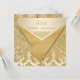 Esta elegante y sofisticada invitación de aniversario de bodas de 35 años con patrón de brocado de damasco beige y dorado y solapas delanteras doradas brillantes con PRINTED ON tiene un adorno dorado ornamentado en la parte delantera y una araña de salón de baile formal en negro en la parte posterior. Haría una declaración elegante para la pareja que celebra 35 años de matrimonio. Sugiero papel metálico de hielo o champán, fieltro crema o papel básico. Si necesita algún artículo que coincida, por favor envíe su solicitud a niteowlstudio@gmail.com.