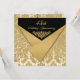 Esta elegante y sofisticada invitación para el 45 aniversario de boda con patrón de brocado de damasco negro, taupe y dorado con solapas delanteras doradas brillantes y abiertas IMPRESAS tiene un adorno dorado ornamentado en la parte delantera y una araña de salón de baile formal en negro en la parte posterior. Haría una declaración elegante para la pareja que celebra 45 años de matrimonio. Sugiero papel metálico de hielo o champán, fieltro crema o papel básico. Si necesita algún artículo que coincida, por favor envíe su solicitud a niteowlstudio@gmail.com.