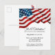 Tarjeta postal de invitación del 4 de Julio con bandera roja, blanca y azul ondeando.