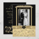 Esta elegante invitación de aniversario de bodas de oro con flores negras y doradas tiene una cinta FAUX dorada y un medallón FAUX grabado con "50" en él, junto con un marco dorado ornamentado para subir una foto digital de la boda. La foto de reemplazo debe tener un tamaño adecuado para una apertura de 3" x 4,5". Si necesita ayuda o requiere artículos coincidentes, envíe un correo electrónico a niteowlstudio@gmail.com. A continuación, se muestran los artículos coincidentes existentes.