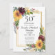 Esta invitación del 50º aniversario de girasoles es perfecta para tu fiesta. Los hermosos girasoles de acuarela y rosas borgoña y flores silvestres etéreas en un doble marco dorado se combinan maravillosamente con el tipo limpio para hacerla impresionante, moderna y clásica. Su dorso de lavado de acuarela borgoña coordinado añade un toque extra. Es muy fácil hacer estas invitaciones seleccionando "Personalizar esta plantilla" y escribiendo tu información. En un abrir y cerrar de ojos podrás ver lo hermosas que serán tus invitaciones.
