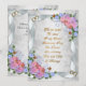 invitación del 50º aniversario de bodas para padres con hermosas orquídeas rosadas, flores azules, corazones dorados, mariposas y cintas. Personalice el interior de esta invitación con la información de su fiesta