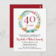 Esta tarjeta postal de invitación para el aniversario de bodas número 40 cuenta con una delicada corona de flores y vegetación hecha de flores silvestres, plantas y mariposas. La invitación se puede personalizar fácilmente con la información especial de su aniversario de rubí. La parte trasera de la invitación presenta una guirnalda floral a juego que enmarca las fechas del aniversario en elegante texto blanco sobre fondo rojo rubí.