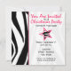Una invitación que ofrece un fondo del estampado de zebra en frente y la parte posterior. El frente ofrece un ilustracion de un árbol de navidad con un esquema de color rosado. El árbol incluye luces rosadas y los ornamentos del estampado de zebra con el árbol a juego bordean y protagonizan. El ilustracion es marco escarpado formado círculo interior alineado con rosa. Personalice el lado opuesto con los detalles de su acontecimiento. Características ilustracion lateral escarpado de la sección y de la estrella.