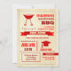 Esta invitación llamativa es ideal recibir una barbacoa para celebrar la graduación de una High School secundaria o de un estudiante universitario. Ofrece una parrilla pasada de moda y un casquillo de la graduación en un vintage que mira el fondo. Diseño unisex. Añada su propia fraseología.