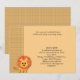 Esta preciosa invitación de bebé es una forma maravillosa de invitar a sus amigos y familiares a que se unan a usted para recibir su nueva llegada. Este diseño tiene un fondo de mariposa con un borde a la izquierda y un león bebé en la esquina. El texto de la invitación de su bebé se encuentra en el medio, sólo tiene que añadir los detalles de su bebé.