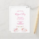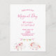Invitación a una fiesta de cumpleaños para una niña. Dos bonitos unicornios blancos y rosados con estrellas y banderas de afinamiento. Fondo blanco. Plantillas para el nombre, edad y detalles del fiesta. Con el texto: Día mágico escrito con un guión moderno de estilo con letras a mano. Letras rosas.