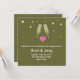 Un invitaion hermoso para un fiesta de compromiso. El diseño contiene dos vidrios del champán con bubles y un corazón.