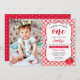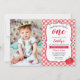 Invitación del cumpleaños de la foto de la comida campestre de la fresa 1ra, guinga roja y tema de la fresa.