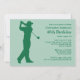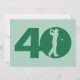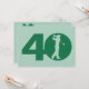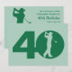 Usted puede personalizar todo el texto en esta invitación temática de la fiesta de cumpleaños del 40.o golf. Usted puede cambiar el texto y el número en el frente y utilizar esto para 50.o, 60.o, 70.o u otro cumpleaños. Las características del diseño una silueta de un golfista que balancea a un club hecho para parecer el cero en 40 en el frente. Forest Green y menta.