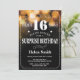 Invitación del cumpleaños de la sorpresa del purpurina del oro décimosexto. Tipografía blanca. Antecedentes blancos y negros de la pizarra. Cumpleaños de los niños. Cumpleaños masculino de los hombres o de las mujeres. Niños muchacho o señora Teen Teenage Bday Invite del chica. décimotercero décimo quinto décimosexto décimo octavo vigésimo 21ro trigésimo 40.o 50.o 60.o 70.o 80.o 90.o 100o. Cualquie edad. Para el arreglo para requisitos particulares adicional, haga clic por favor el "personalizar él" botón y utilice nuestra herramienta de diseño para modificar esta plantilla.