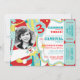 Los payasos de circo de la diversión en los zancos, haciendo juegos malabares y sosteniéndose hinchan la tarjeta de cumpleaños del tema con el parte movible de la foto en azules, rojo, blanco, y amarillo con los boletos de la rifa en el lado. ¡Apenas perfore los lados para un fácil rasgan apagado!