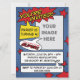 Invitación temática de la fiesta del cumpleaños del niño del cómic por WRKDesigns.