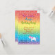 Invitación del cumpleaños con unicornio y el fondo del corazón del arco iris