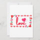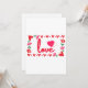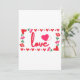 Esta invitación muestra la palabra "Amor" en una fuente de impresión única con letras rojas y contorno rosa dentro de un diseño de estilo rectangular con corazones temáticos rojos y rosados, rosas y corazón de estilo fresa en dos esquinas en este tema del Día de San Valentín. Impreso en un papel clásico de 17,5 pt de grosor con acabado mate sin revestimiento y textura de cáscara de huevo, fabricado e impreso en EE. UU. con "Amor" impreso en la parte posterior.