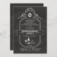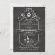 Un diseño de moda en la pizarra blanco y negro con una indirecta del instinto del vintage. Atracción de un remolino-top precioso con el gorra de un cocinero y un panel y una bandera decorativos. Ha acabado con una botella y un vidrio de vino al lado de un plato de frotamiento cubierto.