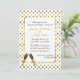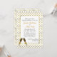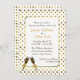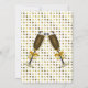 Invitación elegante de la celebración del fiesta de compromiso de la boda hecha en un dorado en el fondo blanco de modelo de lunar, con un área de texto blanca enmarcada dorada. Los gráficos de dos vidrios llenados del champán adornan la parte inferior y la parte posterior de la invitación. Personalice todo el texto para su acontecimiento especial.