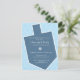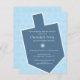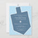 Dreidels es parte de la diversión de Jánuca así que muestre eso con esta invitación de Jánuca. Un dreidel del azul de cobalto toma la mayor parte del frente de la invitación contra una estrella sutil del fondo del azul de David. Toda su información modificada para requisitos particulares del fiesta va dentro del dreidel. Disponible en colores alternos con los productos a juego.