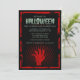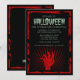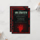 Una mano del zombi está subiendo de la tierra en esta invitación espeluznante del fiesta de Halloween. La base negra se enmarca con una frontera roja sangrienta. ¡Está seguro de poner una frialdad en su espina dorsal!