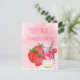 Las fresas de la acuarela de las características de la tarjeta con las palabras "fiesta del fiesta de la cosecha del strawbery le invitan". En la parte posterior usted puede añadir toda su información personal. Acuarela de la bebida de la cereza del tarro de albañil para dar a esta invitación una sensación de la diversión del verano.