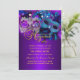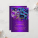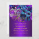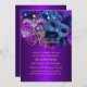 Invitación a la mascarada. Invitación al Mardi Gras. Invitación de fiesta de mascarada. Elegantes máscaras de plumas moradas y azules.