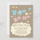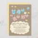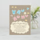 Personalizar este divertido género azul o rosa revelan la invitación a la fiesta con adorables vestidos de niño y chica con texto colgado de un tendedero. Este diseño está decorado con un agradable fondo marrón cálido.