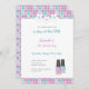 Una invitación moderna del fiesta del balneario que ofrece un ilustracion del esmalte de uñas en un esquema del rosa y de color de la turquesa. Perfeccione para la fiesta del cumpleaños de un chica.