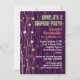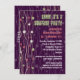 Secuencias de la aceituna, rojas y blancas con las esferas atadas a ellas caída abajo como si los lanzaran en el aire que daba a esta invitación del fiesta una sensación festiva. La imagen también se utiliza como filigrana contra el fondo púrpura rico. Grande para cualquier tipo de fiesta: un acontecimiento corporativo, fiesta de cumpleaños, fiesta de sorpresa o un cóctel. Disponible en colores alternos con los productos a juego.