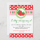 ¡Invitación roja, blanca y verde adorable del fiesta del tema de la fresa del lunar y de la raya!