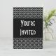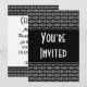 Elegante invitación de fiesta en blanco y negro. Agregue sus propios detalles de eventos. Disponible como juego de cartas planas, tarjetas plegadas, postales, tarjetas fotográficas y sellos postales.