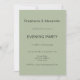 Sage Green Modern and Simple Boda Evening Party Invitation. El color y el tipo de letra se pueden cambiar a través del menú de edición. También puede cambiar el texto y los colores de fondo de ambos lados si lo desea.