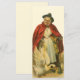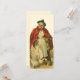 Ilustración vintage de un personaje de un clásico libro de cuentos de Mother Goose de la época victoriana. Un diseño recortado que presenta a una anciana que lleva una capa, gafas con montura de alambre y un sombrero puntiagudo que sostiene una escoba. Un pájaro blanco con alas extendidas tiene una cinta en el pico como si estuviera sujeto con una correa como una mascota.