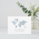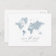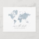 La boda del mapa del mundo de las acuarelas azules salva la postal de la fecha. Con un hermoso mapa del mundo de las acuarelas azules, el corazón móvil para situarse sobre su ubicación y el espacio para la ubicación del nombre y detalles adicionales. Ideal para bodas extranjeros o simplemente porque amas tu estado